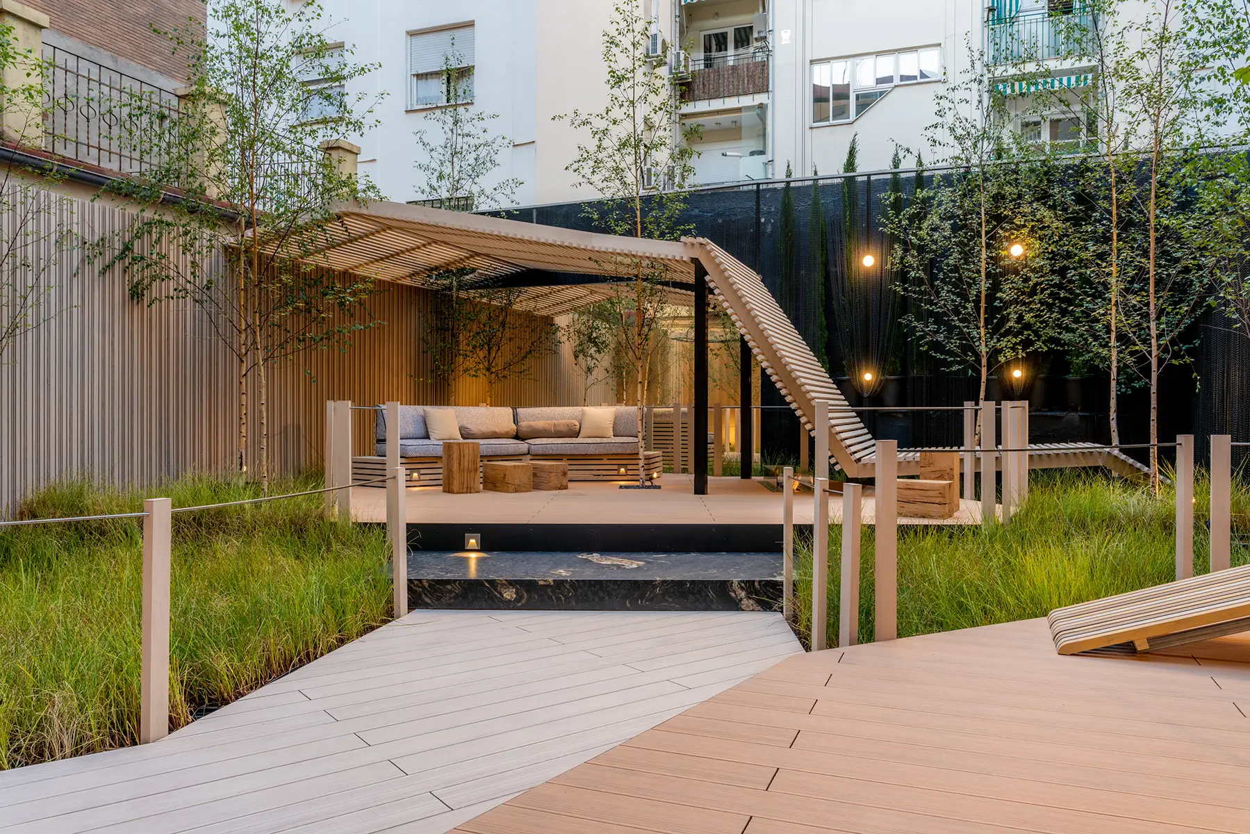 Hoy en día, los pavimentos trascienden su papel funcional para convertirse en una expresión clave del diseño arquitectónico. Gracias a la innovación tecnológica, exploramos una amplia gama de colores, acabados y formatos que añaden un toque distintivo a cualquier espacio. Existen tres tipologías de tarima exterior: una tarima sólida, una alveolar y nuestra última incorporación; Dune.